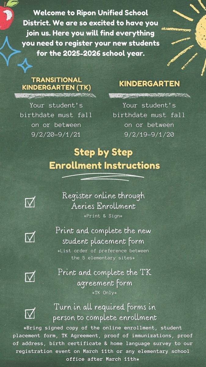 ALL TK-8TH grade registration packets will be time and date stamped, and placed in the order in which it is received. Registrations can be turned in to any elementary school site.